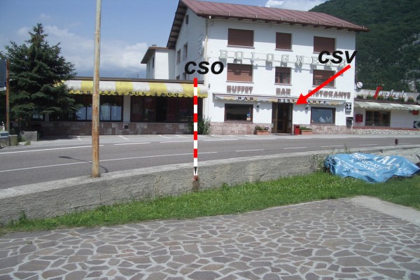 | Contrassegni | [{"simbolo_contrassegno":"B1","materializzazione":"(CSO) – Bullone infisso sul muro in c.a. di fronte al ristorante \"Al Bolognese\",lato opposto alla strada, al km 25,850 circa della S.S.51."},{"simbolo_contrassegno":"B5","materializzazione":"(CSO') – Disco metallico impiombato del Catasto sull'estremit\u00e0 destra della soglia in c.a. al piano terra,davanti alla porta d'ingresso."},{"simbolo_contrassegno":"V1","materializzazione":"(CSV) – Mensola infissa sulla facciata,a destra della porta suddetta."}] |