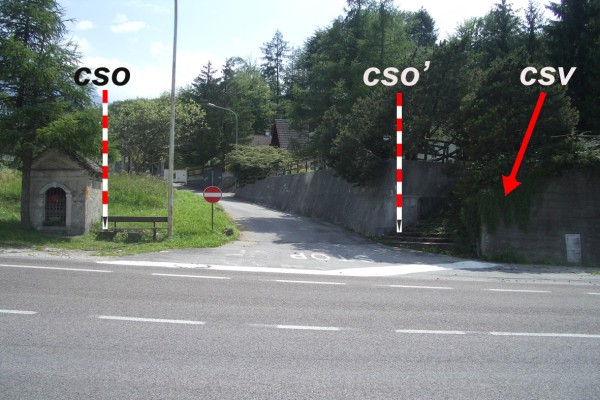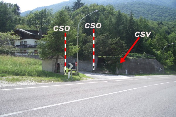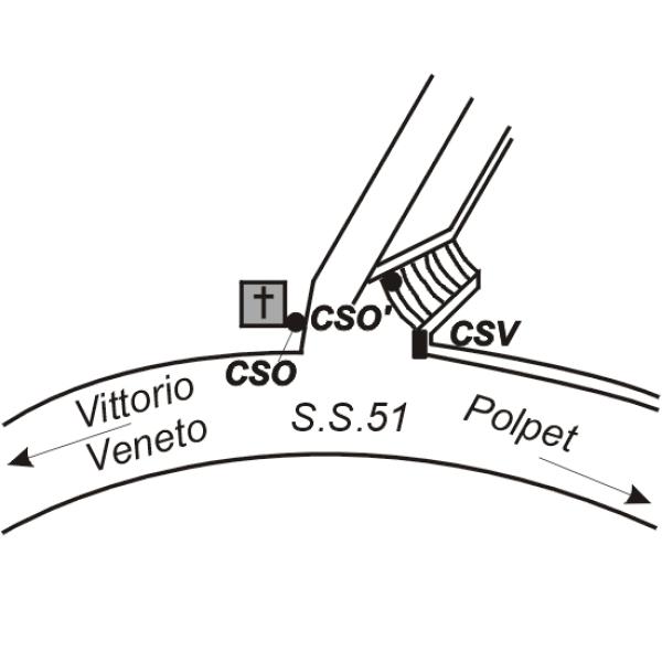 [{"simbolo_contrassegno":"P5","materializzazione":"(CSO) – Pozzetto rialzato con tubo in plastica e tappo in ghisa interrato alla base della parete laterale destra presso lo spigolo sinistro del tabernacolo."},{"simbolo_contrassegno":"B5","materializzazione":"(CSO') – Disco metallico impiombato del catasto a sinistra del primo gradino della scalinata di accesso alla villa prospiciente l'oratorio e la vecchia strada per Fadalto."},{"simbolo_contrassegno":"V4","materializzazione":"(CSV) – Piastrina del catasto infissa sul muro di sostegno a destra della suddetta scala."}]