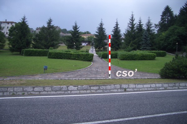 [{"simbolo_contrassegno":"B1","materializzazione":"(CSO) – Bullone infisso nella trave in c.a. della tombinatura al km 23,560 circa di fronte all'accesso al parco."},{"simbolo_contrassegno":"B7","materializzazione":"(CSO') – Contrassegno orizzontale del Catasto infisso al centro del cordolo in pietra parallelo alla S.S.51."},{"simbolo_contrassegno":"B4","materializzazione":"(CSO'') – Centrino universale posto sul cordolo in pietra prospiciente la strada che conduce al monumento dei caduti ,a fianco del CSO'."}]