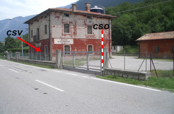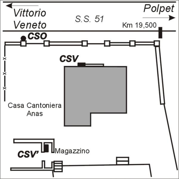 | Contrassegni | [{"simbolo_contrassegno":"B1","materializzazione":"(CSO) – Bullone infisso sul lato fronte strada del pilastro di destra del cancello carrabile lato verso Vittorio Veneto."},{"simbolo_contrassegno":"V1","materializzazione":"(CSV) – Mensola infissa sulla facciata a destra della porta d'ingresso della Casa Cantoniera."},{"simbolo_contrassegno":"V1","materializzazione":"(CSV') – Mensola infissa sulla facciata della parete interna del magazzino,sulla destra entrando."}] |