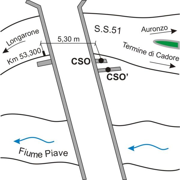 | Contrassegni | [{"simbolo_contrassegno":"B1","materializzazione":"(CSO) – Bullone infisso nel cordolo in c.a. del ponticello sotto l'attraversamento del ponte dell'acquedotto."},{"simbolo_contrassegno":"B7","materializzazione":"(CSO') – Centrino del Centro Sperimentale Arabba (cs n\u00b047) infisso nel cordolo del ponticello sopra indicato in corrispondenza del CSO."}] |