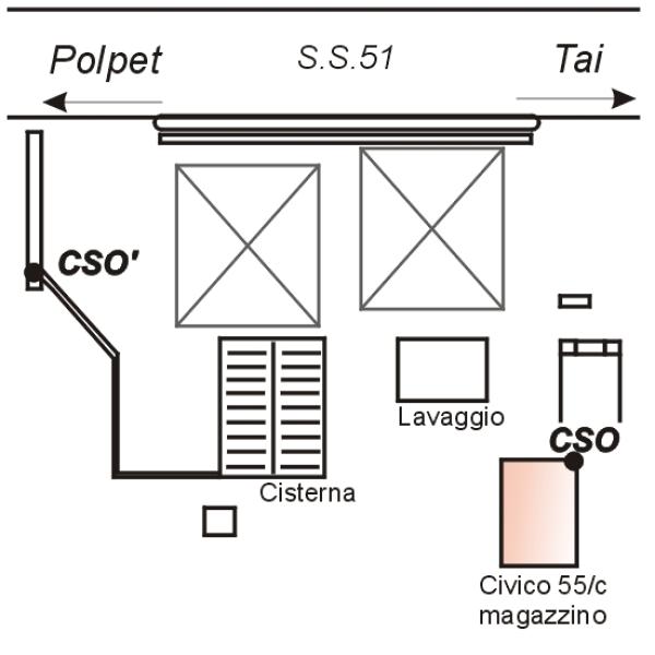 | Contrassegni | [{"simbolo_contrassegno":"B1","materializzazione":"(CSO) – Bullone infisso nella facciata posteriore del magazzino al civico 55\/c vicino allo spigolo verso la strada."},{"simbolo_contrassegno":"B6","materializzazione":"(CSO') – Centrino IGM95 infisso sul muretto che delimita a sud la piazzola del distributore."}] |