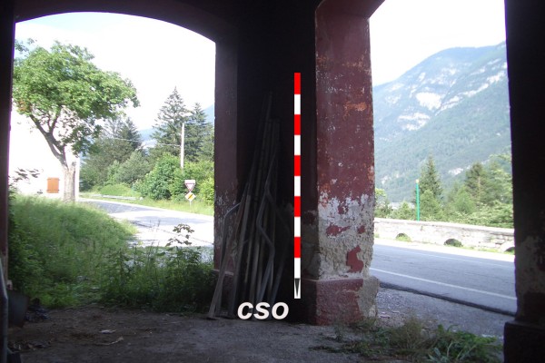 | Contrassegni | [{"simbolo_contrassegno":"B1","materializzazione":"(CSO) – Bullone infisso nella colonna d' angolo di destra del portico di fronte al CSO 32."},{"simbolo_contrassegno":"V2","materializzazione":"(CSV) – Piastrina a barilotto infissa sul piedritto dell'arco che guarda verso Tai."}] |