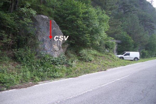| Contrassegni | [{"simbolo_contrassegno":"P3","materializzazione":"(CSO) – Chiusino in ghisa interrato all' estremit\u00e0 e nell' angolo formato dal parapetto a valle della strada accanto all' apertura di un sentiero che scende verso la ferrovia."},{"simbolo_contrassegno":"V1","materializzazione":"(CSV) – Mensola infissa su un balzo roccioso prospiciente il CSO."}] |