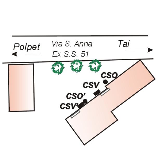 | Contrassegni | [{"simbolo_contrassegno":"P3","materializzazione":"(CSO) – Chiusino in ghisa interrato alla base della facciata a sinistra della porta d' ingresso al civico 3 di via S.Anna."},{"simbolo_contrassegno":"B5","materializzazione":"(CSO') – Disco impiombato sul marciapiede a destra dell'ingresso al civico 4 di via S.Anna."},{"simbolo_contrassegno":"V1","materializzazione":"(CSV) – Mensola infissa sulla facciata a destra della porta del civico 3."},{"simbolo_contrassegno":"V3","materializzazione":"(CSV') – Piastrina infissa antica sullo stipite di destra del suddetto ingresso."}] |