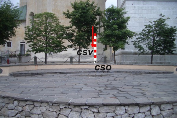 [{"simbolo_contrassegno":"P3","materializzazione":"(CSO) – Chiusino in ghisa interrato alla base dell' abside del duomo di Cortina, presso l'angolo di destra."},{"simbolo_contrassegno":"V1","materializzazione":"(CSV) – Mensola infissa sul muro dell' abside in corrispondenza del CSO."}]