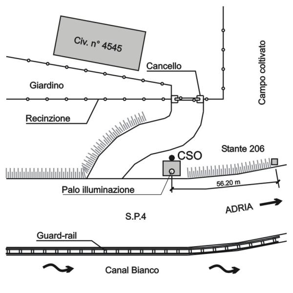| Contrassegni | [{"simbolo_contrassegno":"B1","materializzazione":"(CSO) – Bullone infisso sul basamento del palo per l'illuminazione pubblica in fronte al civico 4545 di via Piave ( S.P. 4) e a m .56.20 prima dello stante n\u00b0 206 del Genio Civile Regionale di Rovigo"}] |