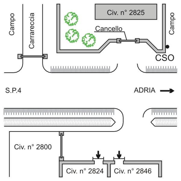 [{"simbolo_contrassegno":"B1","materializzazione":"(CSO) – Bullone infisso nella recinzioe in blocchi di cemento a destra del civ. 2825 ( 75 ) di via Verdi"}]