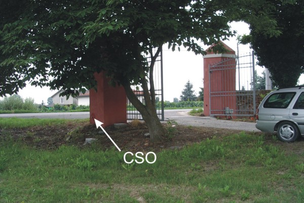 [{"simbolo_contrassegno":"B1","materializzazione":"(CSO) – Bullne infisso sul pilastro destro della cancelata d' ingresso all'azienda agricola \" Sasserami \""}]
