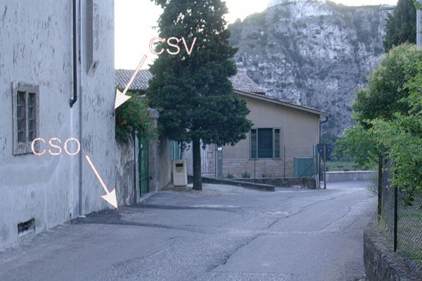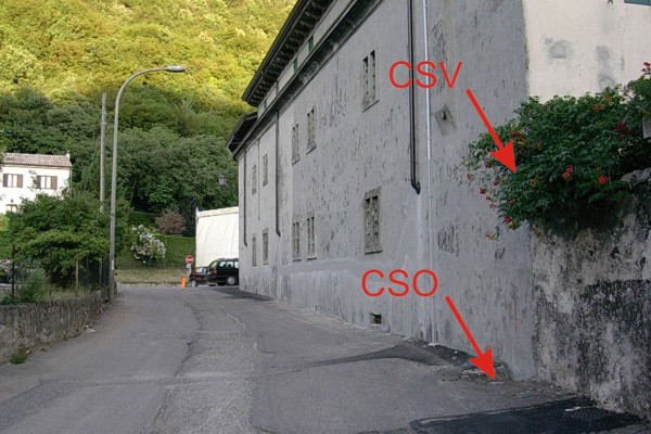 | Contrassegni | [{"simbolo_contrassegno":"P2","materializzazione":"(CSO) – Chiusino in ghisa ubicato alla base dello spigolo destro del fabbricato a sinistra del cancello al civ. 92\/A"},{"simbolo_contrassegno":"V1","materializzazione":"(CSV) – Mensola murata nella facciata del fabbricato suddetto in corrispondenza del CSO."}] |