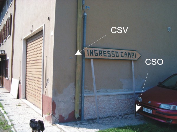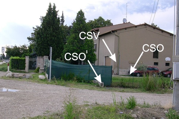 | Contrassegni | [{"simbolo_contrassegno":"P5","materializzazione":"(CSO) – Pozzetto posto alla base della facciata laterale destra della casa a circa 2,10 m. dallo spigolo sinistro"},{"simbolo_contrassegno":"B1","materializzazione":"(CSO') – Bullone infisso alla testa del parapetto del canale di scolo"},{"simbolo_contrassegno":"V4","materializzazione":"(CSV) – Piastrina di altro ente, Catasto, infissa sulla facciata laterale destra in corrispondenza dello spigolo sinistro"}] |