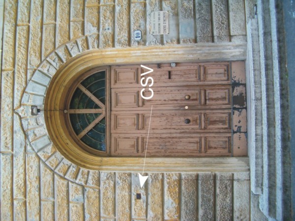 | Contrassegni | [{"simbolo_contrassegno":"B1","materializzazione":"(CSO) – Bullone infisso nella facciata della Centrale dell'Acquedotto a sinistra della porta"},{"simbolo_contrassegno":"V4","materializzazione":"(CSV) – Piastrina di altro ente, murata a sinistra della porta d'accesso al civ. 10."}] |