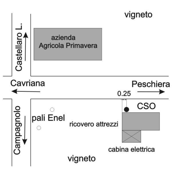 [{"simbolo_contrassegno":"B1","materializzazione":"(CSO) Bullone infisso su una parete di un ricovero attrezzi agricoli vicino a una cabina elettrica vicino alla strada."}]