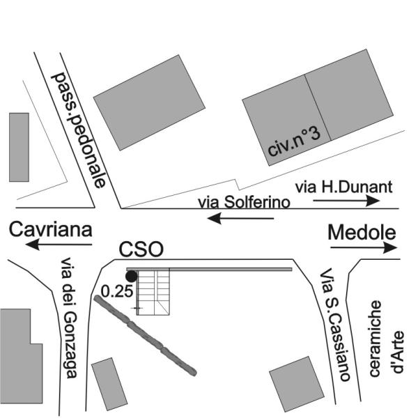| Contrassegni | [{"simbolo_contrassegno":"B1","materializzazione":"(CSO) Bullone infisso su un manufatto in cemento armato vicino alla scaletta in c.a. che scende sotto la strada."}] |