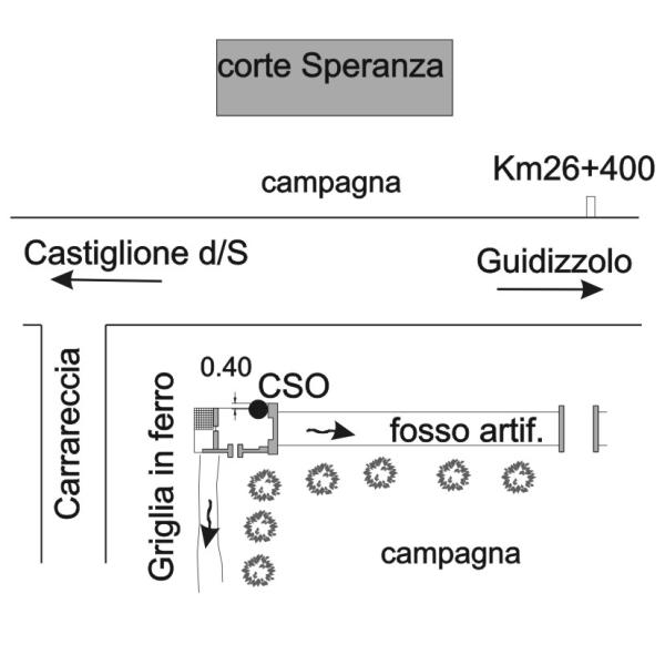 [{"simbolo_contrassegno":"B1","materializzazione":"(CSO) Bullone infisso su un manufatto di un fosso artificiale,vicino alla chiusa."}]
