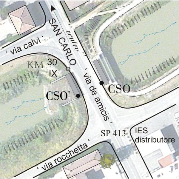 [{"simbolo_contrassegno":"B1","materializzazione":"(CSO) – Bullone sito nella spalla a valle , spigolo di destra, del ponte sul cavo Parmigiano al km 30,900 della SP 413."},{"simbolo_contrassegno":"B4","materializzazione":"(CSO') – Centrino universale infisso sulla sommit\u00e0 della spalla a monte, spigolo destro, del ponte sul cavo Parmigiano al Km 30,900 della S.P.413.(Coincidente con IGM95 74710)"}]