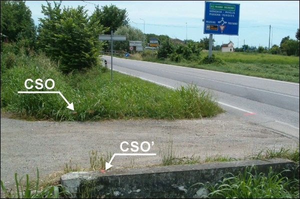 [{"simbolo_contrassegno":"B1","materializzazione":"(CSO) Bullone infisso sulla spalla esterna del ponticello in calcestruzzo."},{"simbolo_contrassegno":"B4","materializzazione":"(CSO') Chiodo infisso sulla spalla del ponticello in calcestruzzo."}]