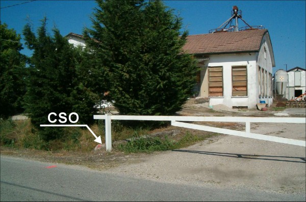| Contrassegni | [{"simbolo_contrassegno":"B4","materializzazione":"(CSO) Chiodo infisso sulla spalla (lato strada) del ponticello in calcestruzzo d'accesso al ex-caseificio."}] |