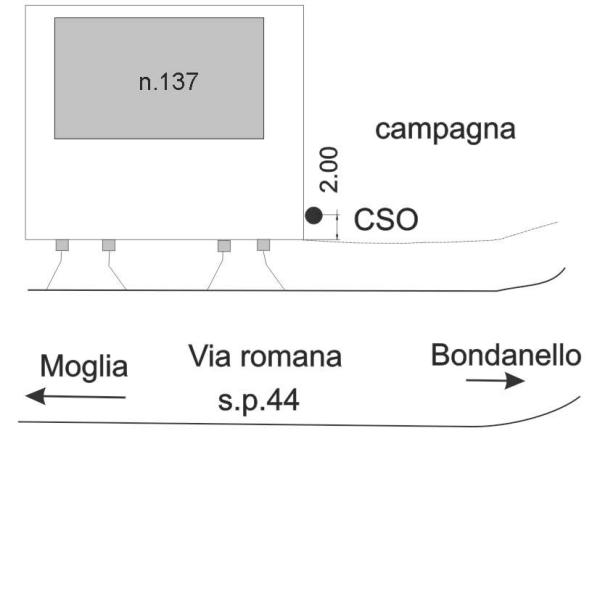 [{"simbolo_contrassegno":"B1","materializzazione":"(CSO) Bullone infisso al muro di contenimento lato campagna dell'abitazione al civico 137."}]