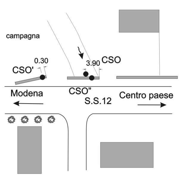 [{"simbolo_contrassegno":"B1","materializzazione":"(CSO) Bullone infisso sulla parte esterna della spalla del ponticello in calcestruzzo."},{"simbolo_contrassegno":"B4","materializzazione":"(CSO') Chiodo infisso sul muro a retta di contenimento della strada."},{"simbolo_contrassegno":"B2","materializzazione":"(CSO'')Chiodo altro ente \"Aimag\" infisso sulla spalla del ponticello."}]