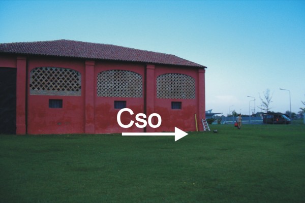 [{"simbolo_contrassegno":"P3","materializzazione":"(CSO) – Chiusino in ghisa di III\u00b0 Cat. interrato alla base della facciata dell'edificio dell'ex fienile, ora annesso all'industria SA.MA., in angolo con la colonna di destra (ARPA N\u00b0 059010)."},{"simbolo_contrassegno":"V2","materializzazione":"(CSV) – Piastrina a barilotto infissa nella colonna d'angolo, a destra dell'edificio, stessa facciata del CSO."}]