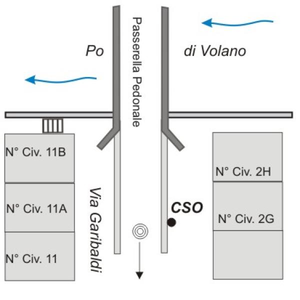 | Contrassegni | [{"simbolo_contrassegno":"B1","materializzazione":"(CSO) – Bullone ARPA infisso sul muro laterale destro della passerella pedonale che attraversa il Po di Volano, di fronte al N\u00b0 Civ. 2\/G (ARPA N\u00b0 000391)."}] |