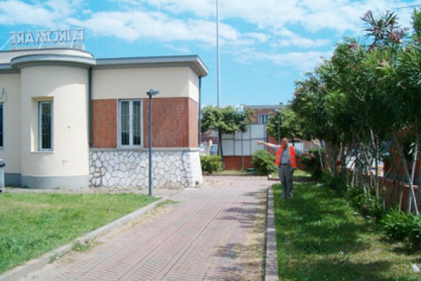 [{"simbolo_contrassegno":"P3","materializzazione":"(CSO) – Chiusino in ghisa di III categoria interrato alla base del muro dell'edificio adibito a bar, lato rivolto verso l'agenzia Marittima Euromare."},{"simbolo_contrassegno":"V1","materializzazione":"(CSV) – Mensola posta sulla facciata rivolta alla darsena della palazzina dell'agenzia Marittima Euromare"}]