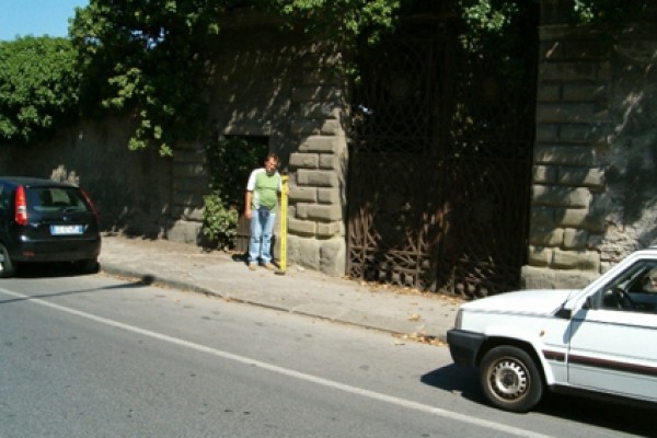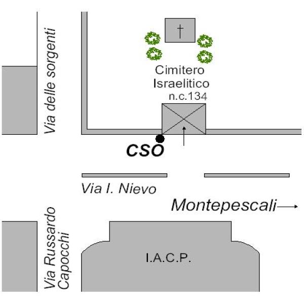 [{"simbolo_contrassegno":"P5","materializzazione":"(CSO) – Pozzetto di IV categoria interrato alla base del pilastro sinistro del cancello d'ingresso dell'ex cimitero israelitico, rialzato con tubo di plastica e tappo in ghisa."}]
