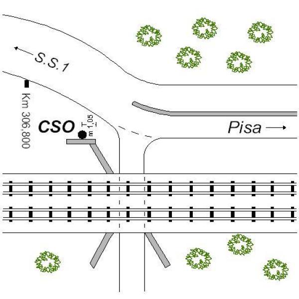| Contrassegni | [{"simbolo_contrassegno":"P5","materializzazione":"(CSO) – Pozzetto di IV categoria interrato alla base del muro di contenimento a destra del muro d'ala del sottopasso, rialzato con PVC e coperchio in ghisa."}] |