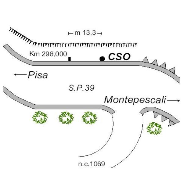 | Contrassegni | [{"simbolo_contrassegno":"P5","materializzazione":"(CSO) – Pozzetto interrato all'interno del muretto di contenimento, lato a monte, della S.P.39, rialzato con tubo in PVC e coperchio in ghisa."}] |