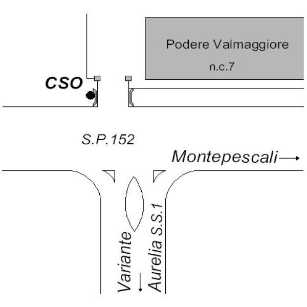 | Contrassegni | [{"simbolo_contrassegno":"B1","materializzazione":"(CSO) – Bullone infisso sulla spalletta del ponticello all'accesso al podere, lato volto verso Cecina."}] |