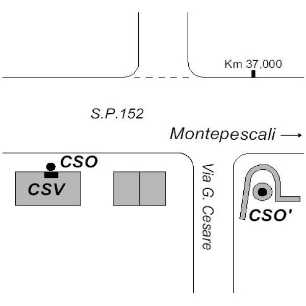 | Contrassegni | [{"simbolo_contrassegno":"P3","materializzazione":"(CSO) – Chiusino in ghisa di III categoria interrato alla base della facciata, a destra della porta d'accesso al bar, coperto con chiusino quadrato."},{"simbolo_contrassegno":"V1","materializzazione":"(CSV) – Mensola infissa sulla stessa facciata, in corrispondenza del CSO."},{"simbolo_contrassegno":"B4","materializzazione":"(CSO') – Centrino universale infisso sulla sommit\u00e0 ed asse della cupola di copertura del pozzo sito all'angolo con la Via G. Cesare."}] |