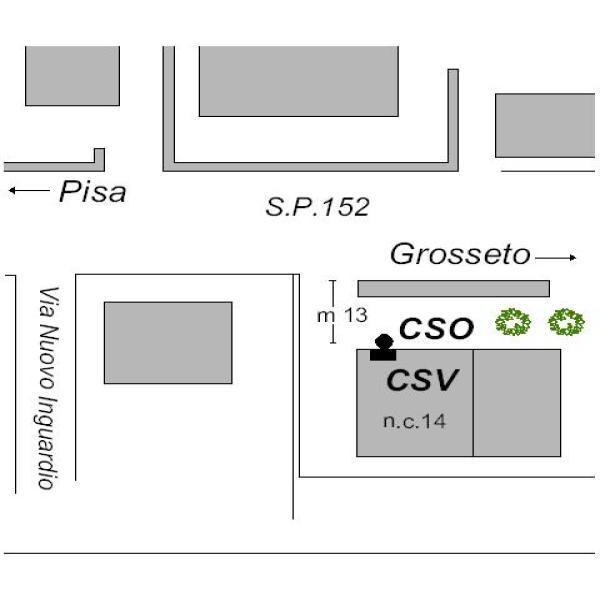 [{"simbolo_contrassegno":"P3","materializzazione":"(CSO) – Chiusino in ghisa di III categoria posto alla base del muro di facciata, spigolo destro."},{"simbolo_contrassegno":"V1","materializzazione":"(CSV) – Mensola infissa sula medesima facciata del CSO in sua corrispondenza."}]