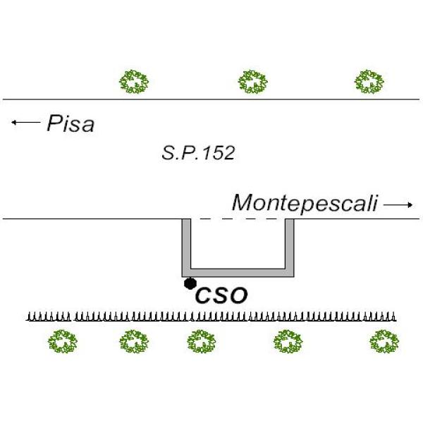 [{"simbolo_contrassegno":"P3","materializzazione":"(CSO) – Chiusino in ghisa di III categoria interrato esternamente al muretto che delimita la piazzola nell'angolo nord-ovest."}]