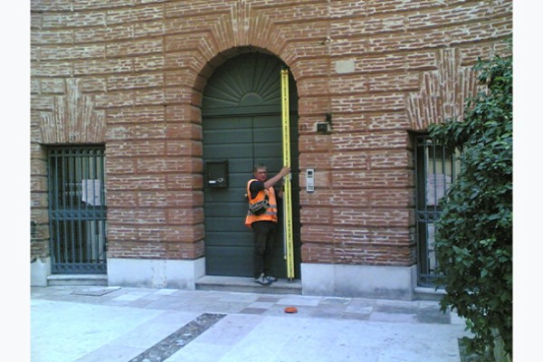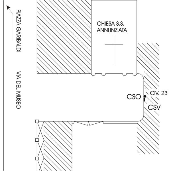 [{"simbolo_contrassegno":"B5","materializzazione":"(CSO) – Disco metallico impiombato IGM sito nella soglia dell'ingresso principale della Fondazione Pirani, in prossimit\u00e0 del montante destro."},{"simbolo_contrassegno":"V3","materializzazione":"(CSV) – Piastrina antica IGM infissa sulla facciata della suddetta fondazione a destra dell'ingresso principale."}]