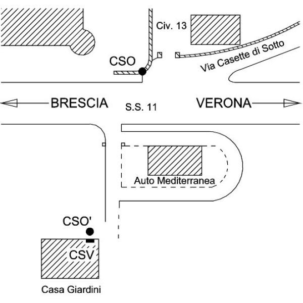 | Contrassegni | [{"simbolo_contrassegno":"B4","materializzazione":"(CSO) – Centrino universale infisso sul muretto divisorio, lato strada, all'ingresso del civico 13."},{"simbolo_contrassegno":"P3","materializzazione":"(CSO') – Pozzetto alla base della facciata della \"Casa Giardino\", a sinistra della prima porta."},{"simbolo_contrassegno":"V1","materializzazione":"(CSV) – Mensola infissa sulla facciata della \"Casa Giardino\", spigolo di sinistra."}] |