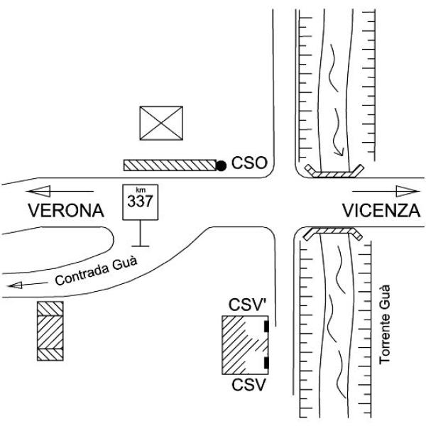 [{"simbolo_contrassegno":"B1","materializzazione":"(CSO) – Bullone infisso sulla testata del muro al km 337 della S.R. 11 subito dopo il ponte del torrente Gu\u00e0, al bivio con la contrada Gu\u00e0, sulla destra in direzione Verona."},{"simbolo_contrassegno":"V1","materializzazione":"(CSV) – Mensola infissa sulla facciata della casetta del guardiano, spigolo di destra."},{"simbolo_contrassegno":"V3","materializzazione":"(CSV') – Piastrina antica infissa sulla facciata suddetta, spigolo di sinistra."}]