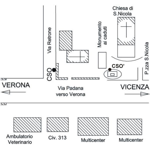 [{"simbolo_contrassegno":"B1","materializzazione":"(CSO) – Bullone infisso nel muro di cinta del cortile della vecchia chiesa, a 0,30m dall'inizio del muro in via Retrone."},{"simbolo_contrassegno":"B4","materializzazione":"(CSO) – Centrino universale infisso sul muretto che circonda il monumento ai caduti nella piazza antistante la nuova chiesa di San Nicola."}]