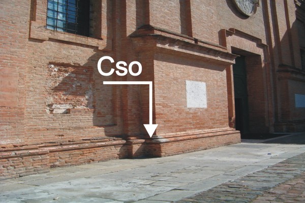 | Contrassegni | [{"simbolo_contrassegno":"B1","materializzazione":"(CSO) – Bullone infisso nella prima risega a sinistra della porta d'accesso alla chiesa.Il contrassegno fa parte della Rete Emilia Romagna – Rete Regionale di Controllo della Subsidenza n\u00b0060270."}] |