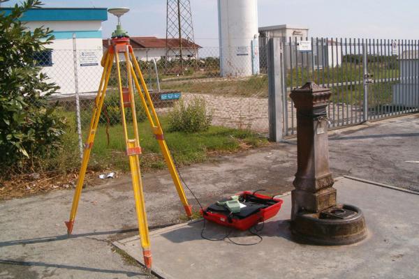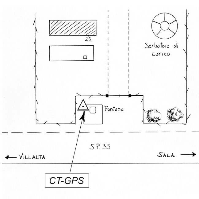 Centrino metallico infisso sullo spigolo nord – est della platea in cemento di una fontana situata nei pressi della cabina di derivazione dell'acquedotto.