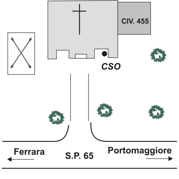| Contrassegni | [{"simbolo_contrassegno":"P3","materializzazione":"(CSO) – Chiusino in ghisa posto nella rientranza a destra della porta. Il contrassegno fa parte della Rete Emilia Romagna – Rete Regionale di Controllo della Subsidenza n\u00b0060220."}] |