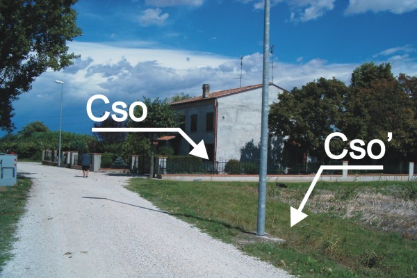 [{"simbolo_contrassegno":"P5","materializzazione":"(CSO) – Pozzetto rialzato con tubo in PVC e protetto da tappo in ghisa posto alla base della perete ed in prossimit\u00e0 dello spigolo sinistro. Il contrassegno fa parte della Rete Emilia Romagna – Rete Regionale di Controllo della Subsidenza n\u00b0060210."},{"simbolo_contrassegno":"B1","materializzazione":"(CSO') – Bullone infisso nel basamento in cemento del palo dell'illuminazione pubblica."}]