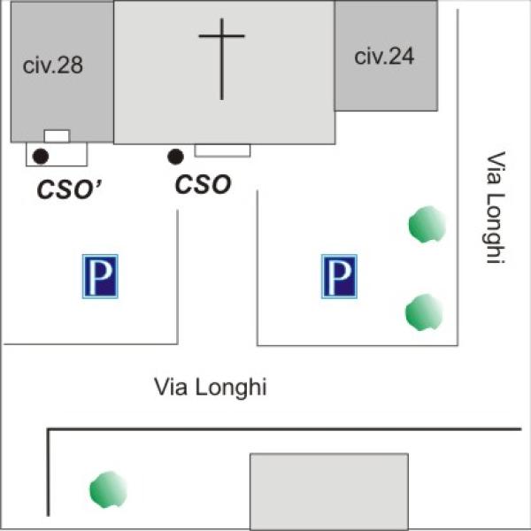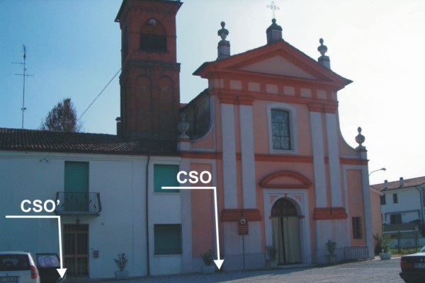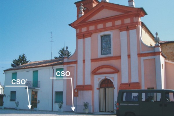 [{"simbolo_contrassegno":"P3","materializzazione":"(CSO) – Chiusino in ghisa posto alla base della facciata della chiesa, a sinistra della porta d'ingresso. Il contrassegno fa parte della Rete Emilia Romagna – Rete Regionale di Controllo della Subsidenza n\u00b0060130."},{"simbolo_contrassegno":"B5","materializzazione":"(CSO') – Disco metallico inpiombato infisso sulla lastra in marmo, posta all'accesso del civico 28."}]