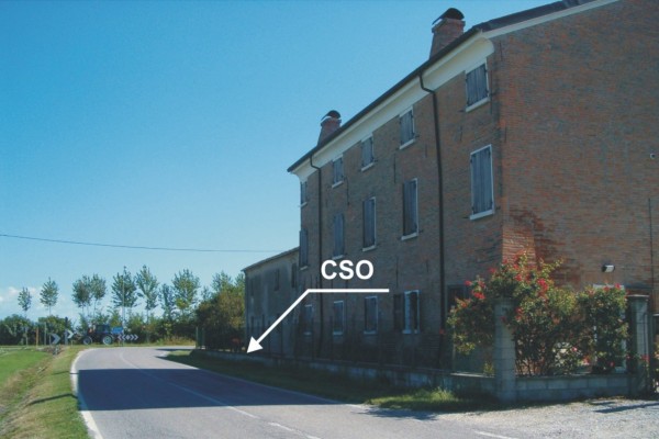 | Contrassegni | [{"simbolo_contrassegno":"P5","materializzazione":"(CSO) – Pozzetto rialzato con tubo PVC e protetto da tappo in ghisa, posto lungo la parete lato strada ed in prossimit\u00e0 dello spigolo sinistro. Il contrassegno fa parte della Rete Emilia Romagna – Rete Regionale di Controllo della Subsidenza n\u00b0060040."}] |
