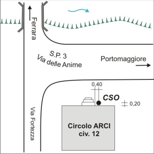 [{"simbolo_contrassegno":"P5","materializzazione":"(CSO) – Pozzetto protetto da chiusino anonimo in cemento 25×25, posto a sinistra delle scalette di accesso al circolo ARCI. Il contrassegno fa parte della Rete Emilia Romagna – Rete Regionale di Controllo della Subsidenza n\u00b0060020."}]