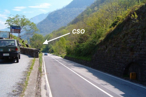 | Contrassegni | [{"simbolo_contrassegno":"B4","materializzazione":"(CSO) – Centrino universale infisso sulla sommit\u00e0 del muro di sostegno che delimita la strada che conduce ad Olgiasca, all'estremit\u00e0 destra e subito dopo il km 87,000, a sinistra in direzione Colico."}] |