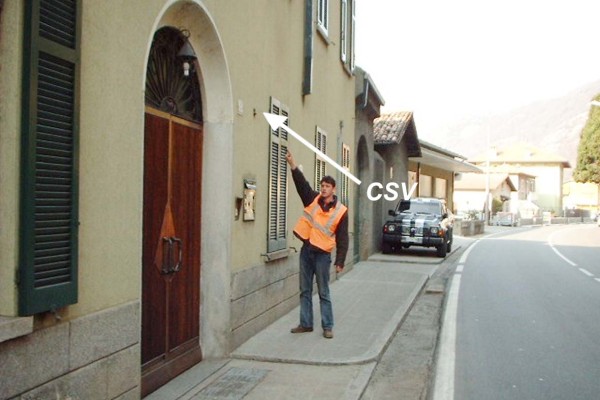 | Contrassegni | [{"simbolo_contrassegno":"B4","materializzazione":"(CSO) – Centrino universale infisso sulla sommit\u00e0 (livello piano stradale) del parapetto, subito a sinistra della facciata della casa al n. civ. 3, della S.P. 72 al km 85,050 lato sinistro direzione Colico."},{"simbolo_contrassegno":"P5","materializzazione":"(CSO') – Pozzetto posto sul marciapiede antistante la facciata della casa suddetta, a sinistra della porta laterale. Attualmente \u00e8 coperto da un tombino, che non \u00e8 possibile rimuovere. Non misurabile."},{"simbolo_contrassegno":"V1","materializzazione":"(CSV) – Mensola infissa sulla facciata della casa n. civico 3, subito a destra del portone d'ingresso."}] |
