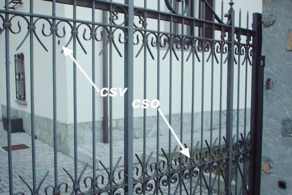 | Contrassegni | [{"simbolo_contrassegno":"P2","materializzazione":"(CSO) – Pozzetto in ghisa rialzato, con tubo di plastica e coperchio posto nella aiuola addossato alla cordonata di sinistra, nell'angolo vicino allo spigolo di sinistra della facciata dell'incubatoio De Marchi, a destra in direzione Colico."},{"simbolo_contrassegno":"V1","materializzazione":"(CSV) – Mensola infissa sulla facciata laterale sinistra del suddetto incubatoio, in prossimit\u00e0 dello spigolo di destra."}] |