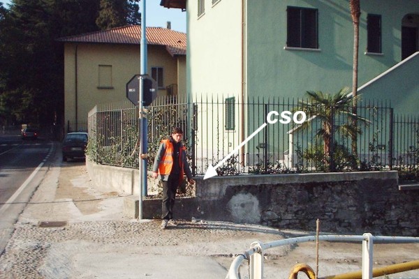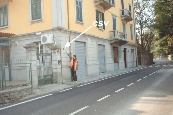 [{"simbolo_contrassegno":"B1","materializzazione":"(CSO) – Bullone infisso nel muretto in calcestruzzo che delimita l'accesso al paese e il giardino di una residenza privata, sullo spigolo a sinistra, proprio di fronte alla ettometrica 67,800 della S.P. 72."},{"simbolo_contrassegno":"V1","materializzazione":"(CSV) – Mensola infissa sulla facciata della residenza al civico 166 di via Roma, presso lo spigolo sinistro."}]