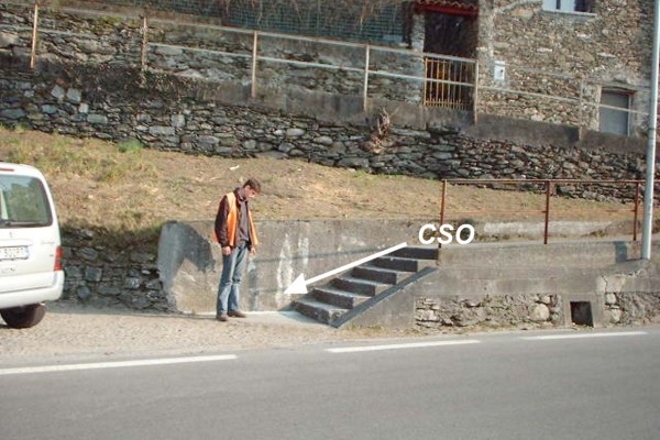 [{"simbolo_contrassegno":"B1","materializzazione":"(CSO) – Bullone infisso nel muro in cls a sinistra salendo sulla scala che conduce al cimitero, subito prima di una piazzola al km 84,030, lato destro della S.P. 72 direzione Colico."}]